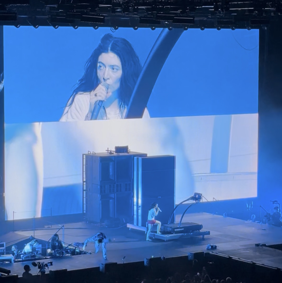 Lorde’s set began with darkness. A blue laser beam ejected out to the center of the stage as Lorde slowly rose on a platform. “I might have been born again, I’m ready to feel like I don’t have the answers,” she sang during the opening song “Hammer.” This is also the opening track to her fourth record entitled “Virgin,” released back in May of this year.