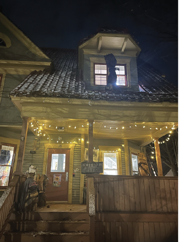 It’s nearly 12 a.m. when I finally arrive at 58 Park St., AKA, the Outing Club. Five-foot icicles hang from each corner of the roof, two feet of snow stand on the ski ramp in the front yard, and raucous laughter can already be heard from upstairs. It being so late, I don’t bother to unpack anything more than my sleeping bag, computer and toothbrush. With these items in hand, I ascend the icy steps to the side porch and enter.