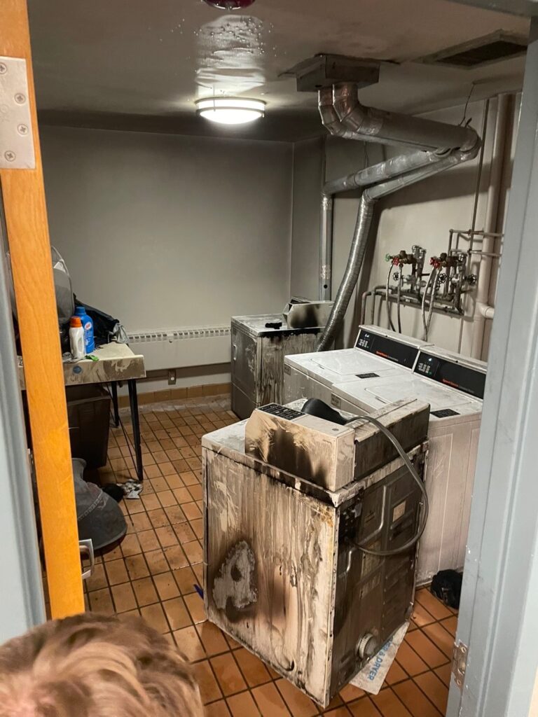 Students on the third floor of Whitman North reported that, upon exiting their rooms due to the alarm, they found black smoke billowing from the laundry room. Ay-Zoh Shaw ’29, a third-floor resident, recalls that “before the typical fire alarm sound even happened, there were these like two to four really low tones,” they thought, “oh that’s weird, like something’s going on.” As they opened their door, “immediately there was black smoke pouring out of the laundry room…just filling up the hallway so quickly.”