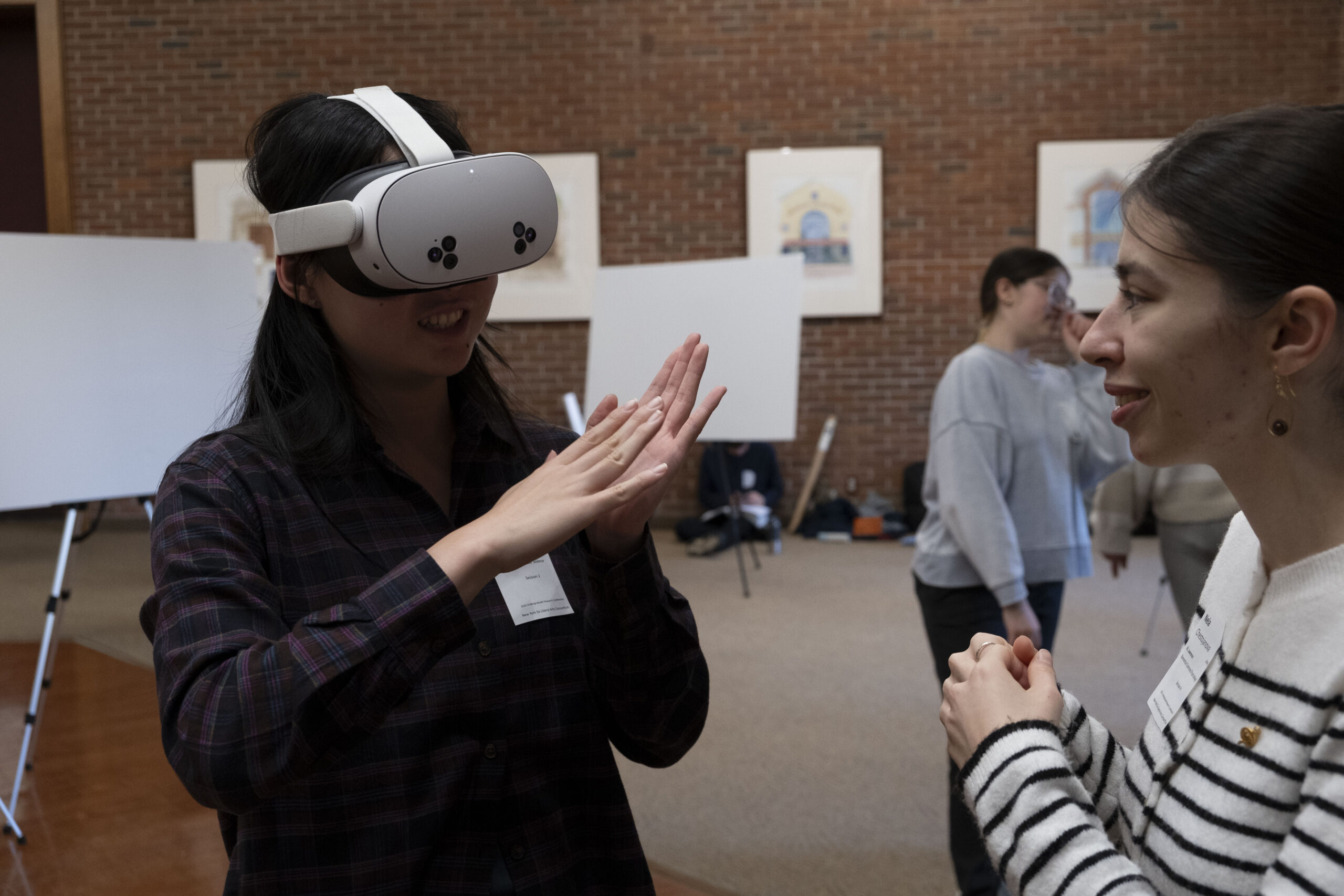 Nela Chestojanova ’27 presented her research that she conducted through the SLU Summer Research Fellowship. Chestojanova found it valuable to have an academic exchange with students from other institutions in biomedical sciences and neuroscience. “I was presenting my poster on virtual reality and spatial cognition,” she said. “For most of them, it was the first time trying VR glasses, so it was very nice to help them experience VR and educate them on the implications of VR for the future.” Chestojanova also enjoyed showcasing campus to the guest students and making them feel at home.