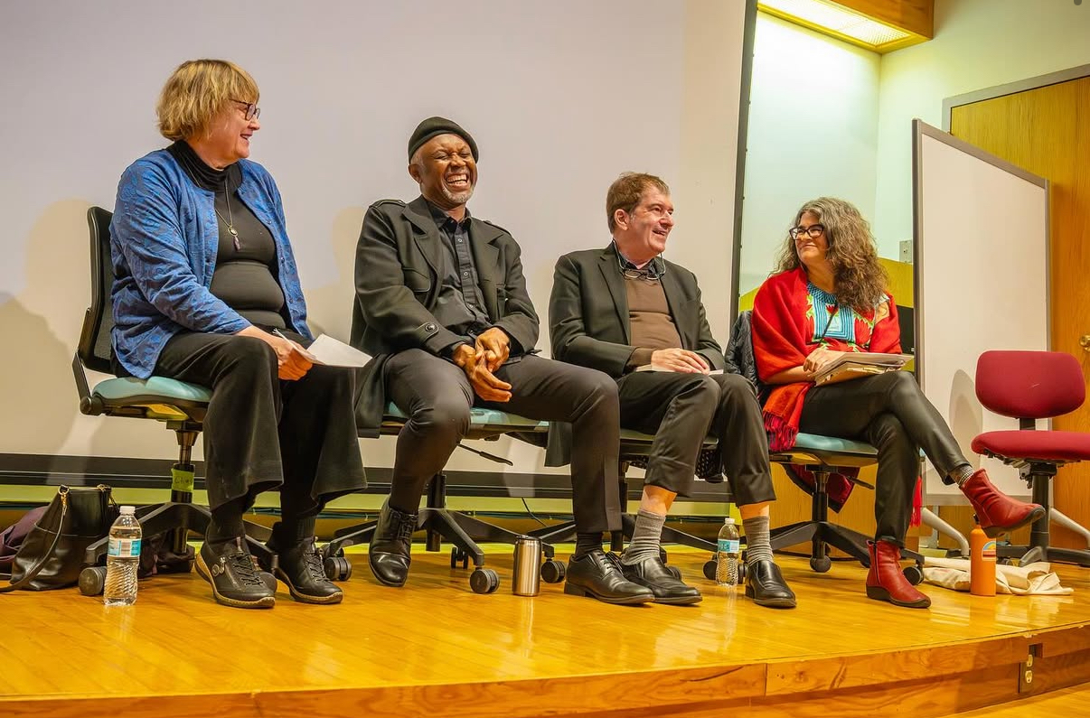 Arroyo was last to speak. Similar to Jemc, Arroyo recalled a salon he held themed around a “literary pot luck,” in which partygoers brought their favorite dishes from literature. Arroyo said that his time at SLU helped him, “discover the writer I could be.” It was also the first time he ventured into writing poetry. He recalled hiking the Mount Adams trail near Newcomb, NY, where he was observing the birch trees around him when the phrase “Before Birches Blue” came to him. It later became the title of his first poetry collection. During the reading, Arroyo read from his collection, “Sown in Earth: Essays of Memory and Belonging,” as well as selections from his “Before Birches Blue collection.