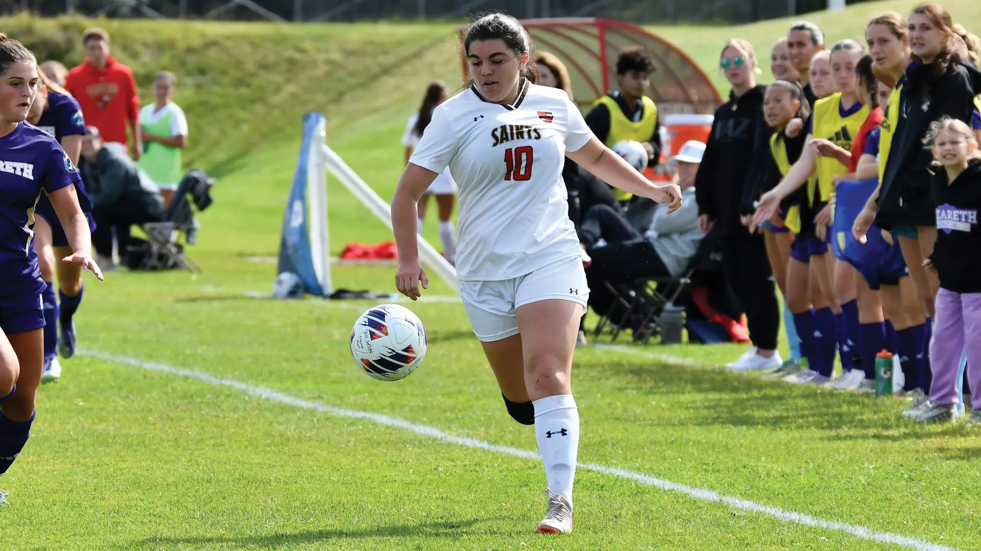 The Saints extended the lead to 2-0 in the 18th minute when Barton centered a pass to Meredith Donahue ’26, who was able to finish it.
